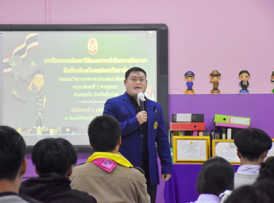 ?การฝึกอบรมพัฒนาวินัยและการทำกิจกรรมจิตอาสา? ???????? วันอังคารที่ 11 พฤศจิกายน 2568 เวลา 13.00 น. นางสาวนารีรัตน์ ธจิตธรรม ผู้อำนวยการโรงเรียนแม่ออนวิทยาลัย มอบหมายให้นายธนวัฒน์ กองแก้ว? รองผู้อำนวยการโรงเรียนแม่ออนวิทยาลัย ให้เกียรติ?เป็นประธานกล่าวเปิดงานและร่วมกิจกรรม โดยฝ่ายงานกิจการนักเรียน โรงเรียนแม่ออนวิทยาลัยได้จัดกิจกรรม ?การฝึกอบรมพัฒนาวินัยและการทำกิจกรรมจิตอาสา? ณ ห้องแอ็คทีฟบอร์ด อาคารเฉลิมพระเกียรติ สำหรับการจัดการฝึกอบรมในครั้งนี้ได้รับความอนุเคราะห์คณะวิทยากรทหารจากกองพันรบพิเศษที่ 2 กรมรบพิเศษที่ 5 ค่ายขุนเณร อำเภอแม่ริม จังหวัดเชียงใหม่ มาทำการฝึกอบรมและร่วมทำกิจกรรมจิตอาสากับนักเรียน S:0