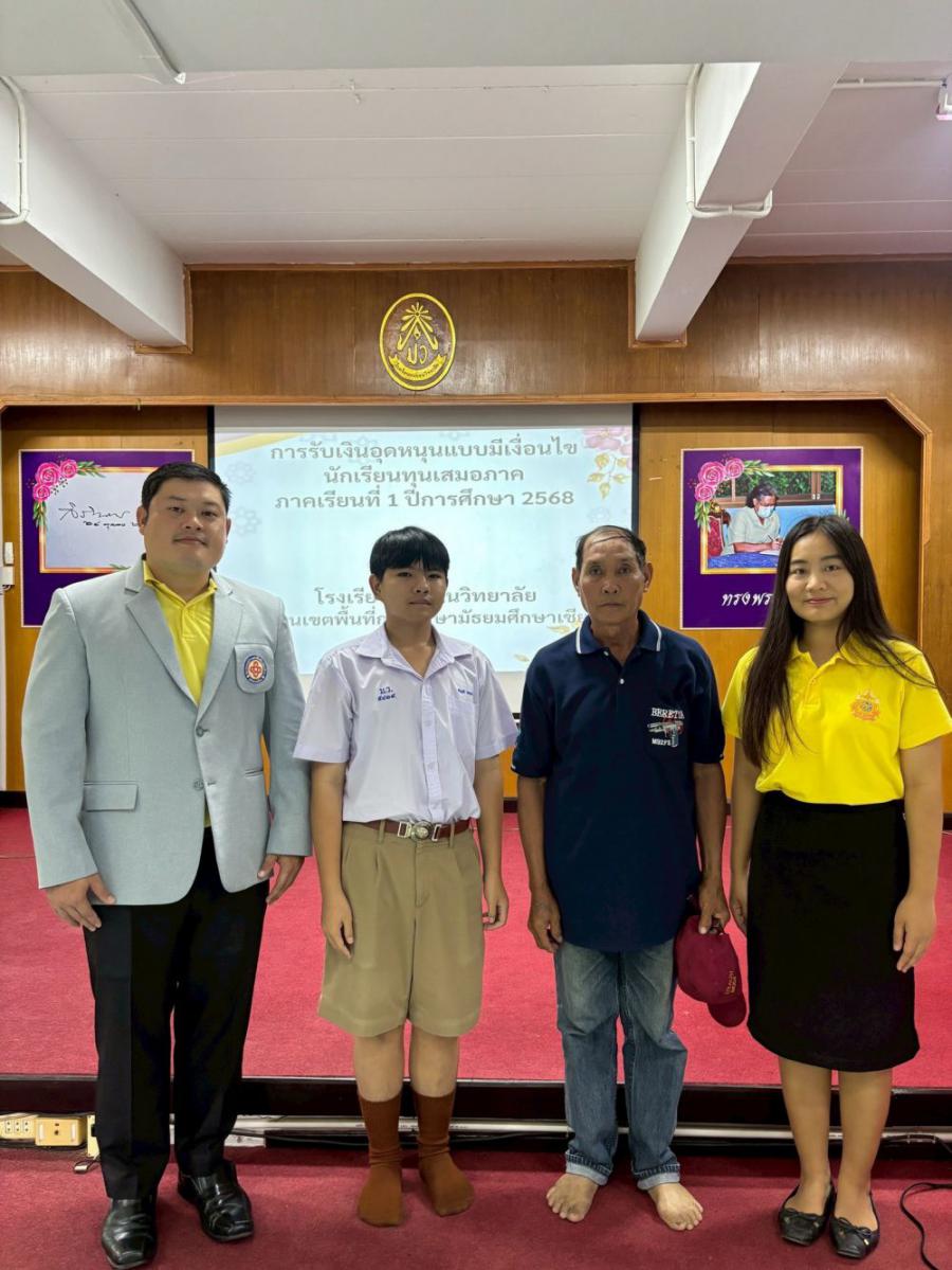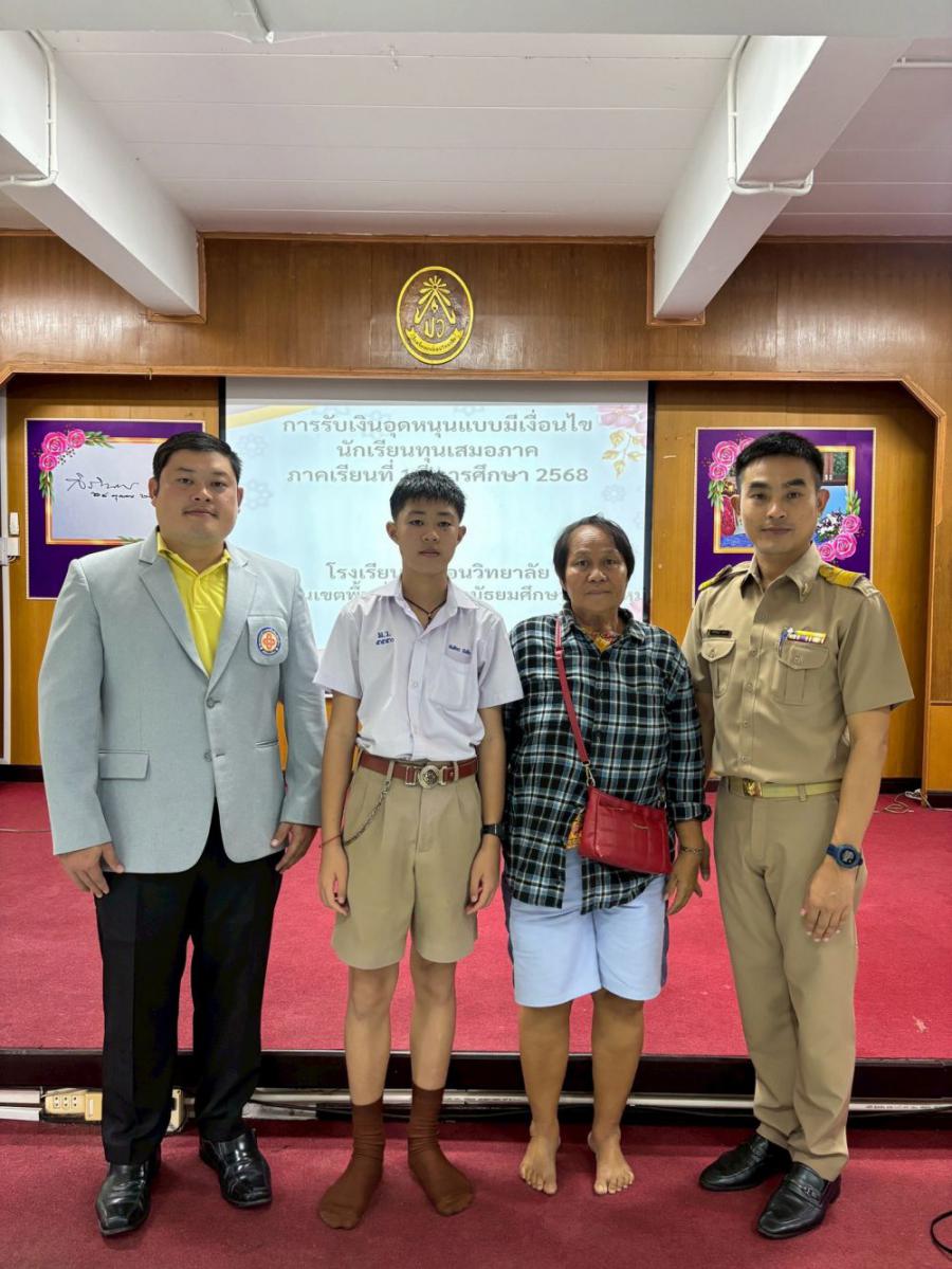 วันที่ 26 สิงหาคม 2568 นางสาวนารีรัตน์ ธจิตธรรม ผู้อำนวยการโรงเรียนแม่ออนวิทยาลัย มอบหมายให้นายธนวัฒน์ กองแก้ว รองผู้อำนวยการโรงเรียนแม่ออนวิทยาลัย และคณะครูกลุ่มงานบริหารงบประมาณ มอบทุนการศึกษา จากกองทุนเพื่อความเสมอภาค (กสศ.) กลุ่มต่อเนื่อง ภาคเรียนที่ 1 ปีการศึกษา 2568 จำนวน 26 ทุน ทุนละ 1,920 บาท รวมทั้งสิ้น 49,920 บาท เพื่อช่วยเหลือนักเรียนที่ขาดแคลนทุนทรัพย์หรือด้อยโอกาสทุกคนให้สามารถเข้าถึงการศึกษาและการเรียนรู้ที่มีคุณภาพได้เต็มตามศักยภาพ S:0