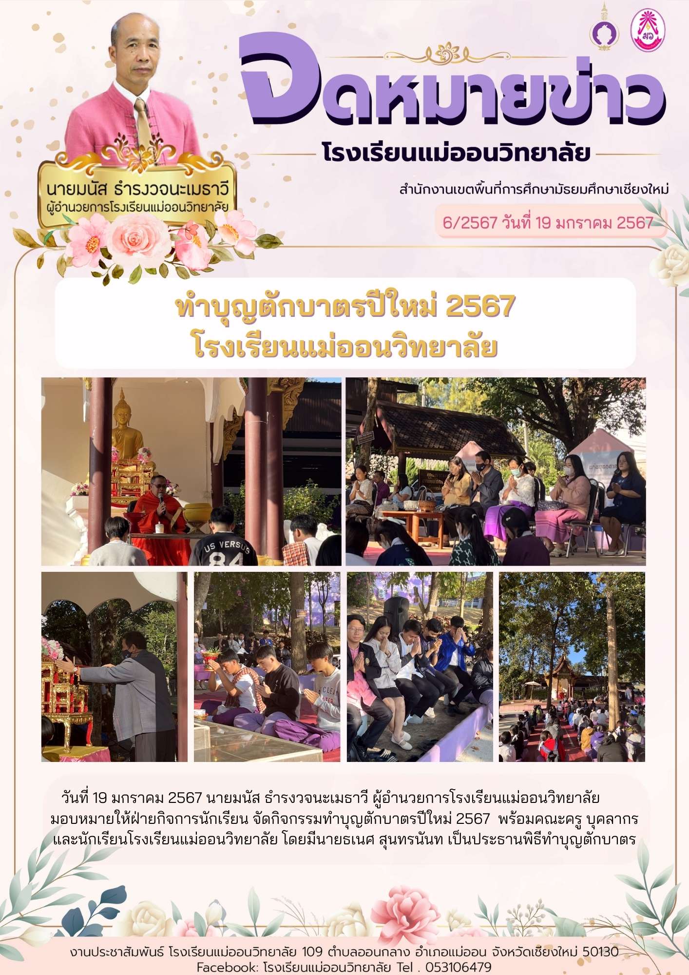ทำบุญตักบาตรปีใหม่ 2567 โรงเรียนแม่ออนวิทยาลัย