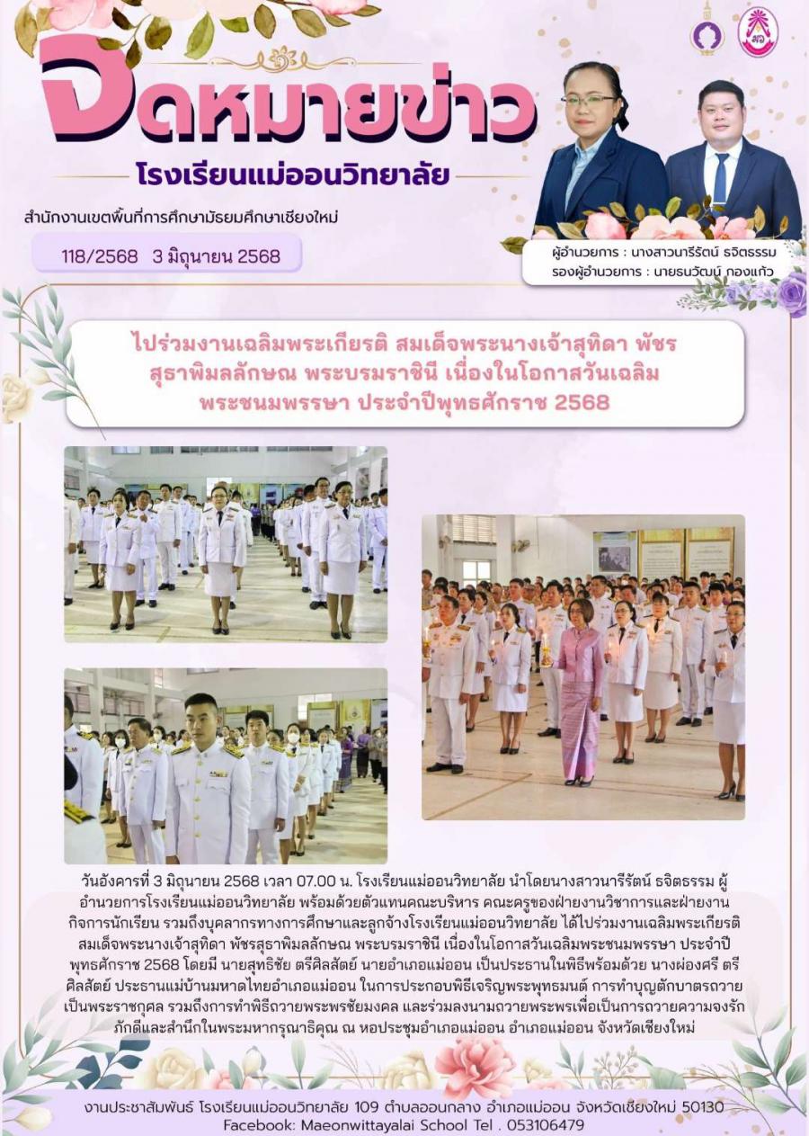 ไปร่วมงานเฉลิมพระเกียรติ สมเด็จพระนางเจ้าสุทิดา พัชรสุธาพิมลลักษณ พระบรมราชินี เนื่องในโอกาสวันเฉลิมพระชนมพรรษา ประจำปีพุทธศักราช 2568