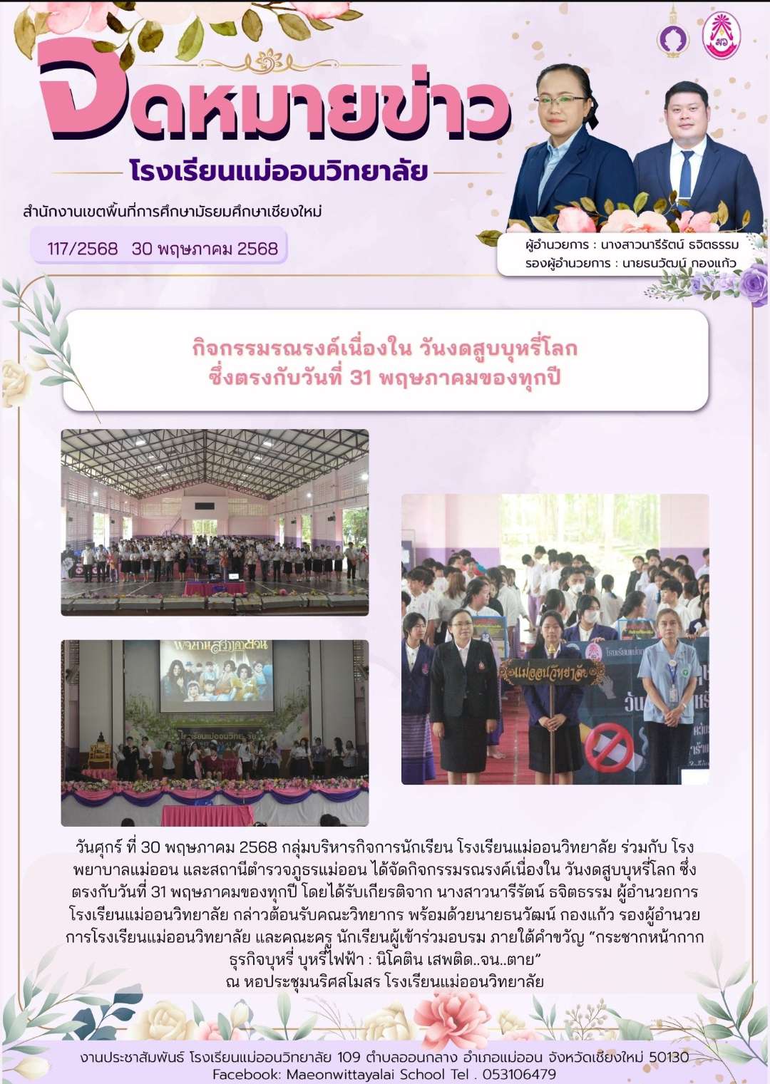 กิจกรรมรณรงค์เนื่องใน วันงดสูบบุหรี่โลก ซึ่งตรงกับวันที่ 31 พฤษภาคมของทุกปี