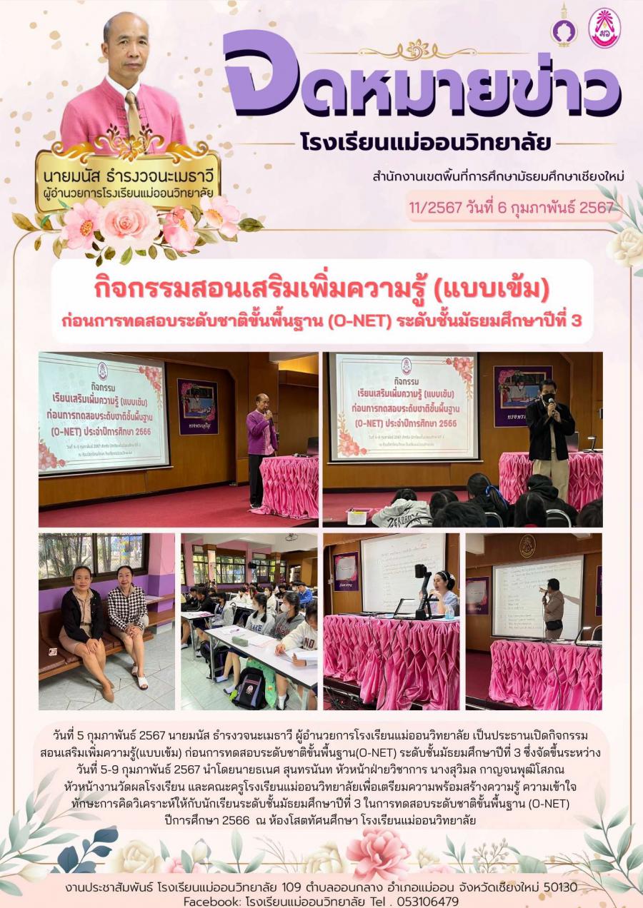 กิจกรรมสอนเสริมเพิ่มความรู้ (แบบเข้ม) ก่อนการทดสอบระดับชาติขั้นพื้นฐาน (O-NET) ระดับชั้นมัธยมศึกษาปีที่ 3