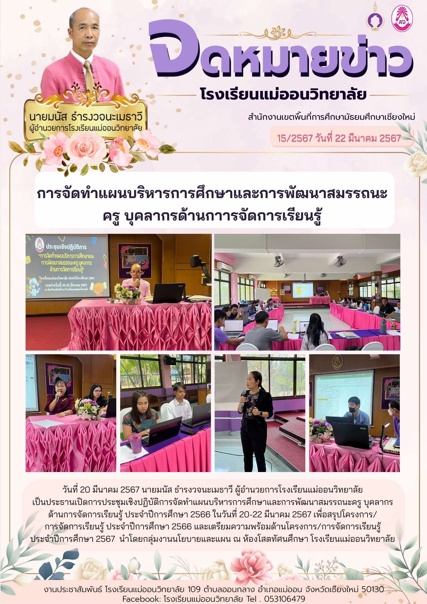 การจัดทำแผนบริหารการศึกษาและการพัฒนาสมรรถนะครู บุคลากรด้านกาารจัดการเรียนรู้