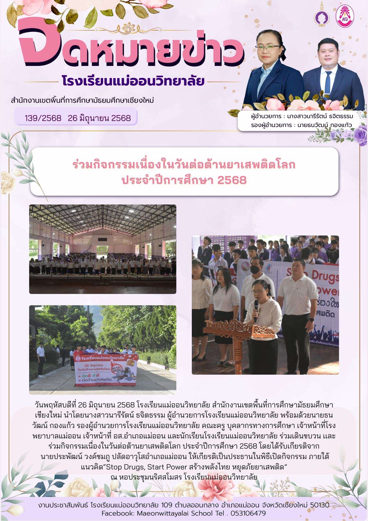 ร่วมกิจกรรมเนื่องในวันต่อต้านยาเสพติดโลก ประจำปีการศึกษา 2568