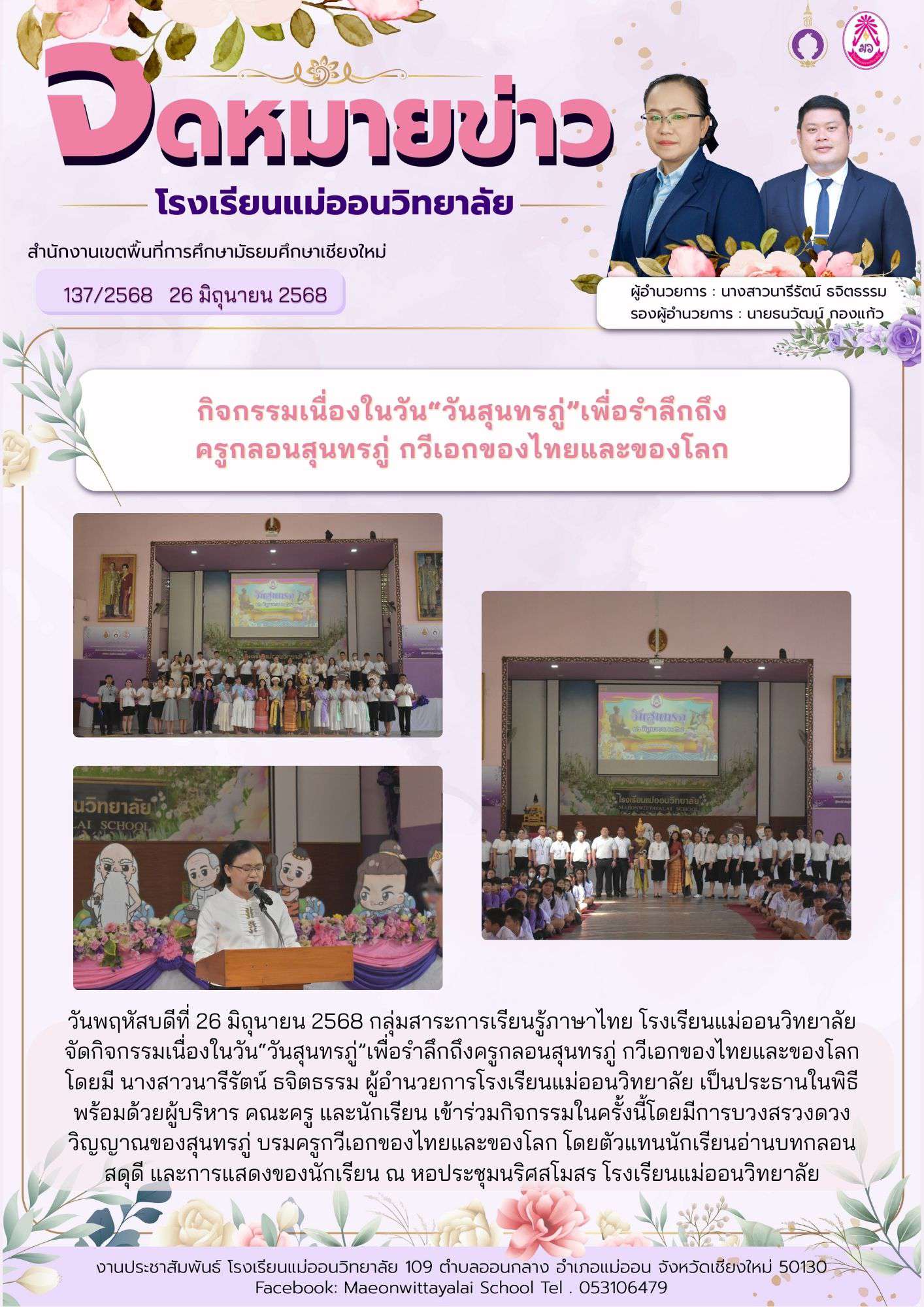 กิจกรรมเนื่องในวัน?วันสุนทรภู่?เพื่อรำลึกถึงครูกลอนสุนทรภู่ กวีเอกของไทยและของโลก