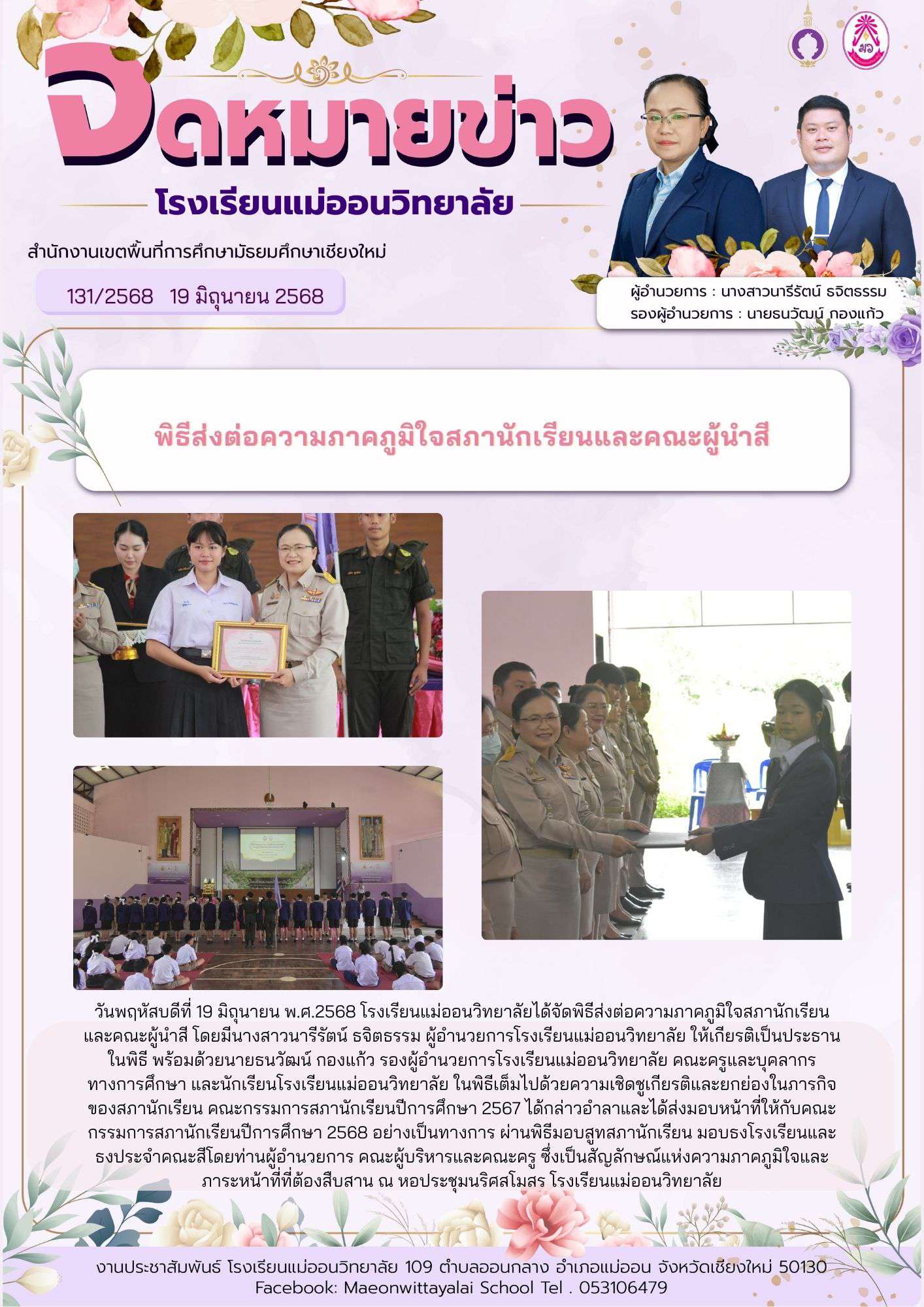พิธีส่งต่อความภาคภูมิใจสภานักเรียนและคณะผู้นำสี