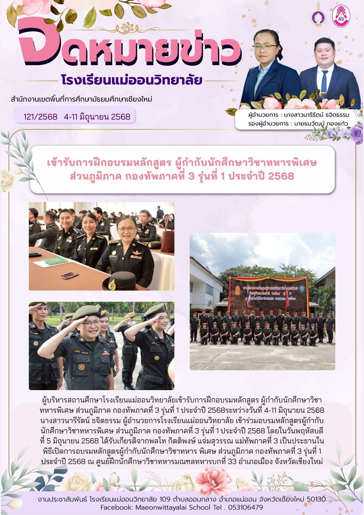 เข้ารับการฝึกอบรมหลักสูตร ผู้กำกับนักศึกษาวิชาทหารพิเศษ ส่วนภูมิภาค กองทัพภาคที่ 3 รุ่นที่ 1 ประจำปี 2568